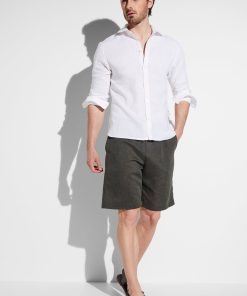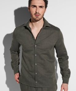 Zimmerli Men’s Loungewear Linen Blend | Button Front Shirt Long Sleeve – Dark Olive | Dark Olive