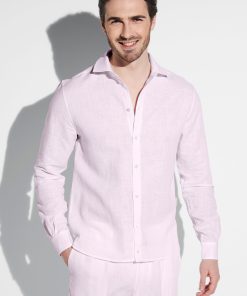 Zimmerli Men’s Loungewear Linen Blend | Button Front Shirt Long Sleeve – Pink Whisper | Pink Whisper