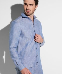 Zimmerli Men’s Loungewear Linen Blend | Button Front Shirt Long Sleeve – Denim Blue | Denim Blue