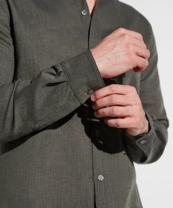 Zimmerli Men’s Loungewear Linen Blend | Button Front Shirt Long Sleeve – Dark Olive | Dark Olive