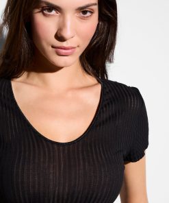 Zimmerli Women’s Underwear Maude Privé | Spaghetti Top, Ajouré Rib With Calais Lace – Black | Black