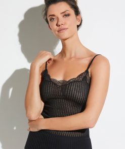 Zimmerli Women’s Underwear Maude Privé | Spaghetti Top, Ajouré Rib With Calais Lace – Black | Black