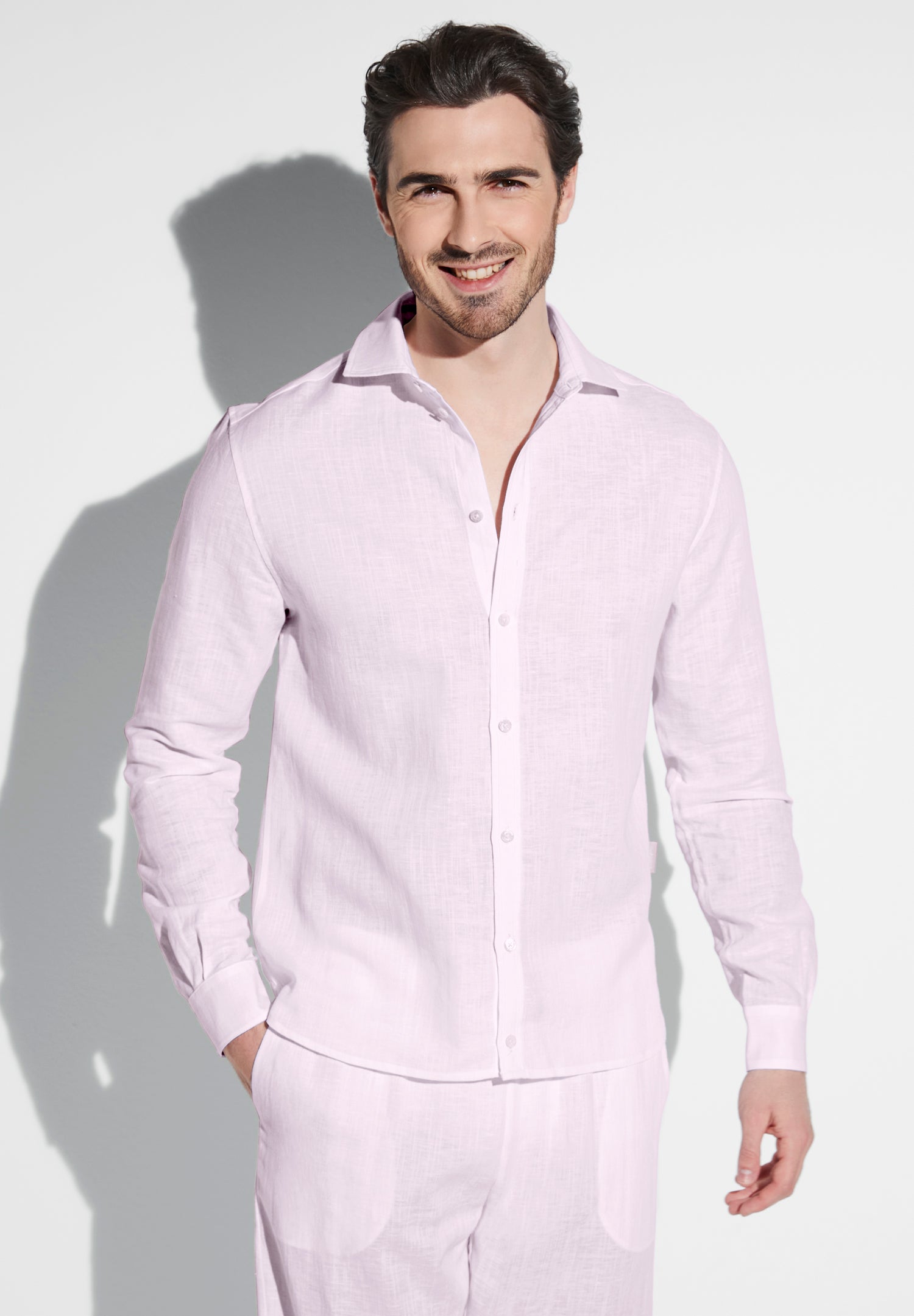 Zimmerli Men’s Loungewear Linen Blend | Button Front Shirt Long Sleeve – Pink Whisper | Pink Whisper