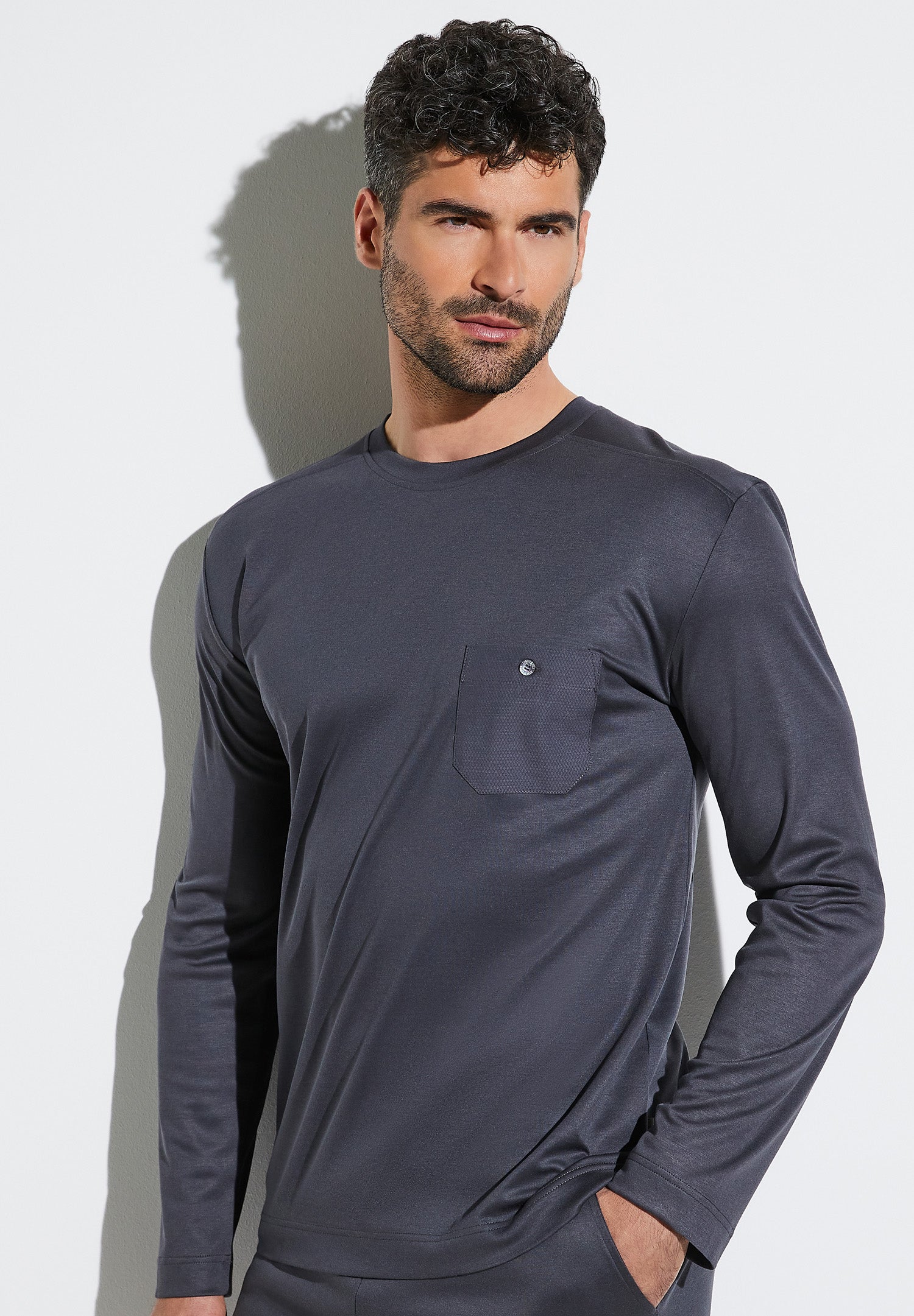 The classic essential: you will love this long-sleeved top with its classic style and an exquisite blend of natural fibres. The light fabric feels incredibly gentle, pampering the skin with its silky texture. Cotton and Micromodal made from beechwood fibres make this top particularly breathable and offer optimum moisture wicking properties. This avoids perspiration even during strenuous activities and ensures a stylish appearance at all times. The slim-fitting design, flat seams and sophisticated details, such as discreet chest pocket, add the perfect finishing touches to this top. Choose your favourites from the colours in the Modern Lounge collection and combine this long-sleeved top with all sorts of other garments.