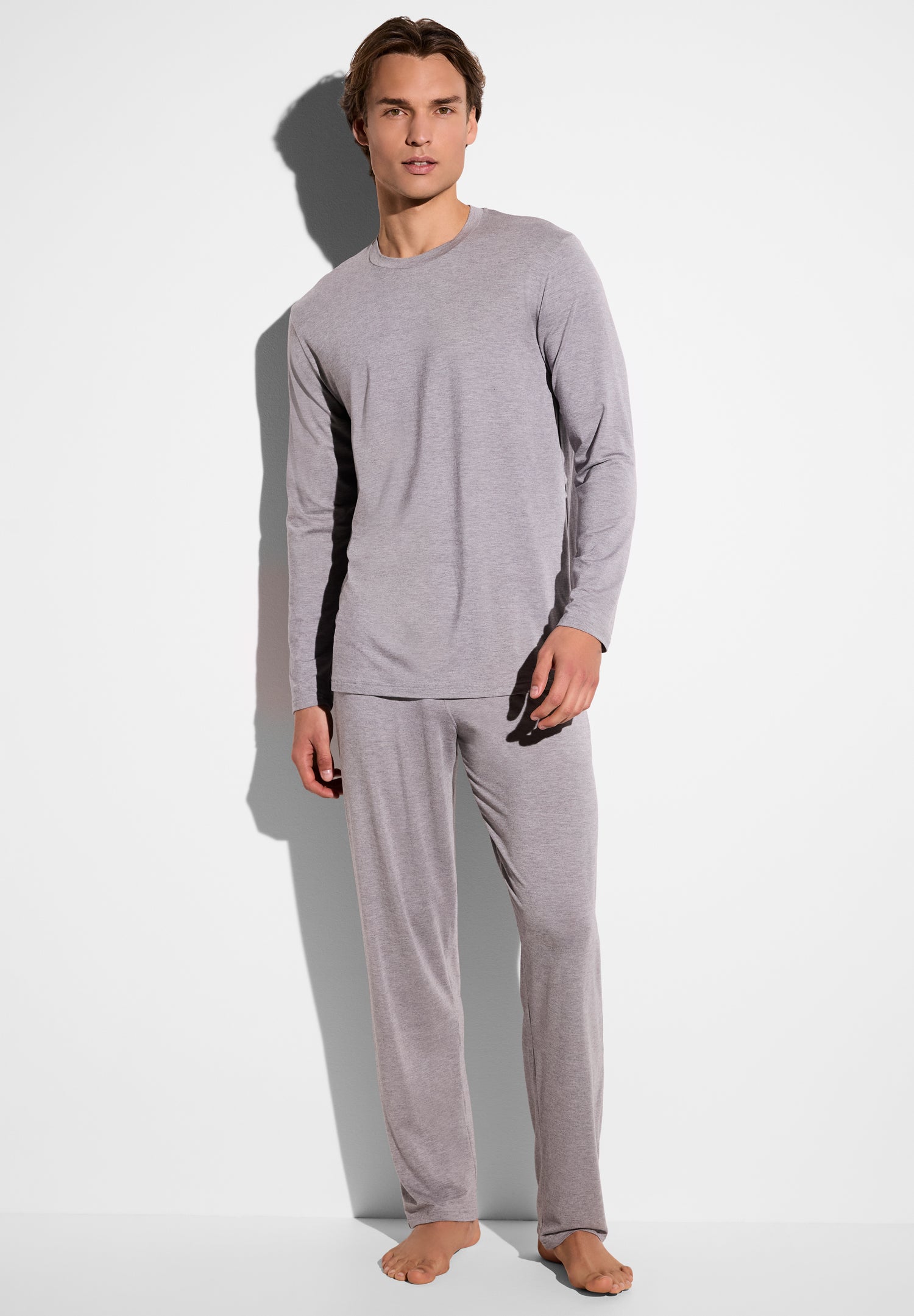 These long men’s pyjamas from our Cozy Comfort line are made of modal, some polyamidee and a small amount of elastane. The combination of these three Materials gives the fabric its special features: softness, flexibility and a soft sheen.