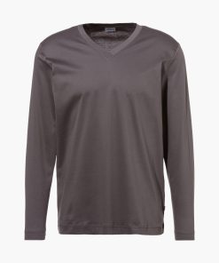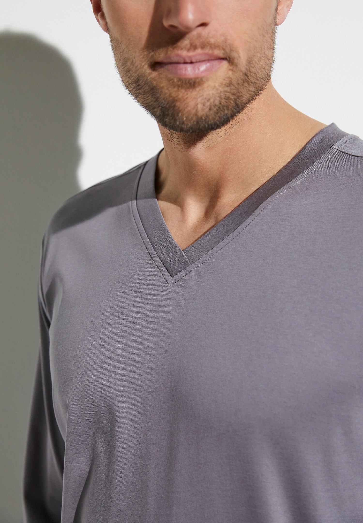 Simplicity meets complete transparency – we pride ourselves in giving full visibility of the manufacturing process of our cotton, from the crop to the finalised yarn. This men’s long-sleeved shirt features a V-neck and forward shoulder seams for a modern look. There is an inset band at the neckline that crosses over in the centre of the V-neck. It provides a very cosy and relaxed wearing sensation.