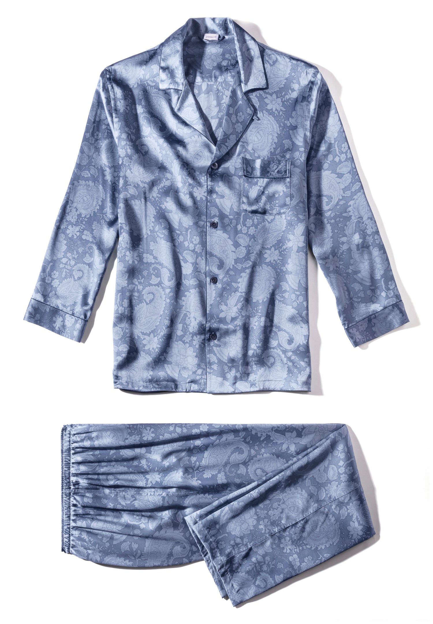 Zimmerli Men’s Silk Nightwear | Pyjama Long – Paisley Blue | Paisley Blue
