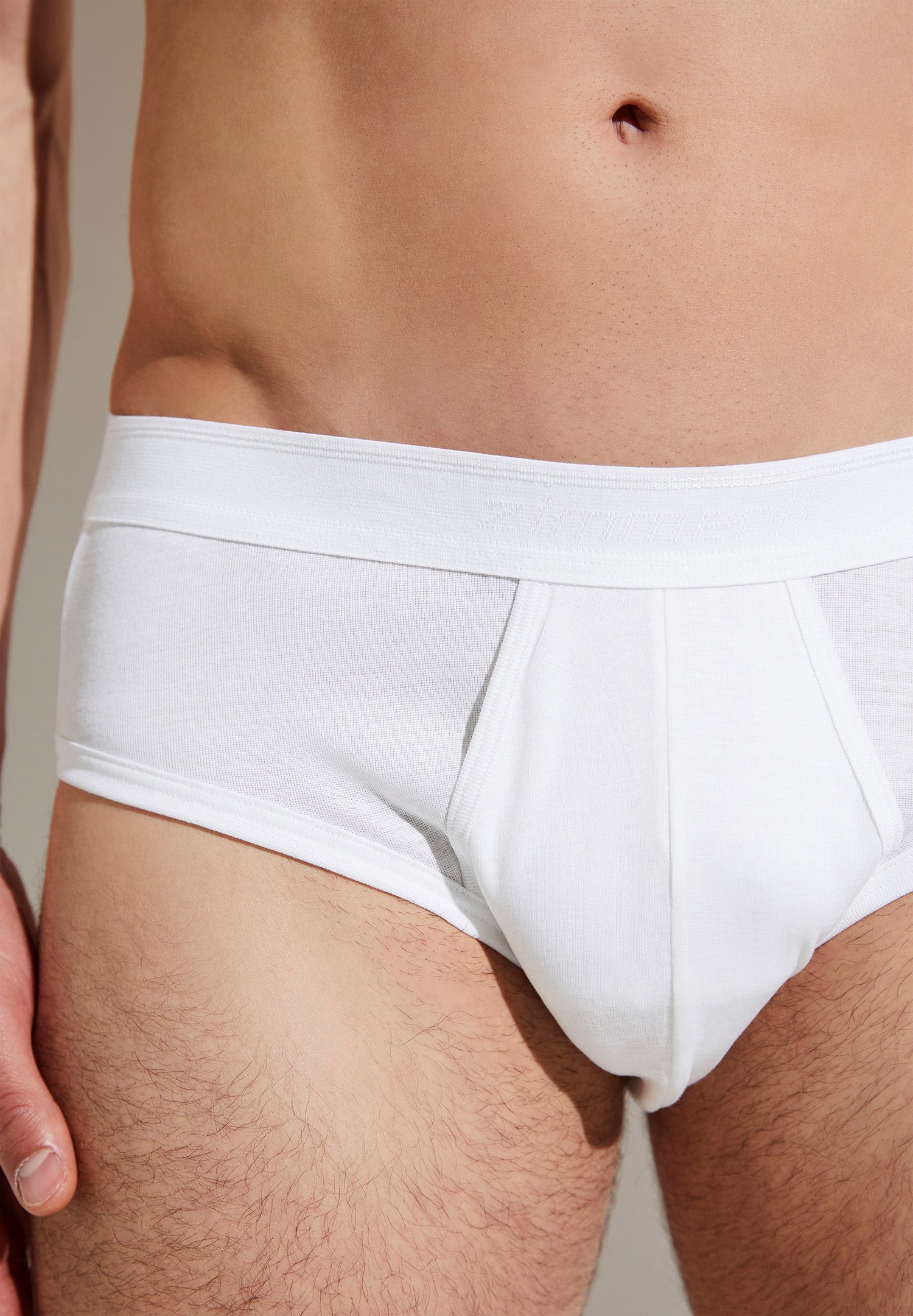 Classic briefs made from pure cotton. Only varieties of cotton with long fibres are used. Any fibres that are too short are removed before further processing, as are other impurities. Next, this high-quality cotton thread is woven to create an opaque fine-rib fabric. This is very soft and has a fine, smooth surface. Other positive features include excellent absorbency and a low allergenic potential. This fine-rib fabric is also distinguished for being very skin-friendly and having a low allergenic potential. It does not scratch and is exceptionally comfortable. It is stretchy and holds its shape very well. These briefs have a classic design with a comfortable fit. They include a wide, soft logo waistband. This is also lined with soft cotton terrycloth to guarantee unbeatable comfort. These classic briefs have a figure-hugging fit and leave plenty of legroom. They are timeless with a classic masculine look. The wearer emphasises their traditional style with these briefs.