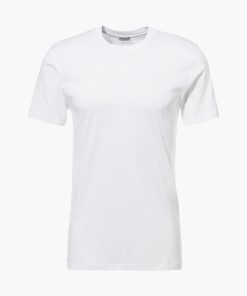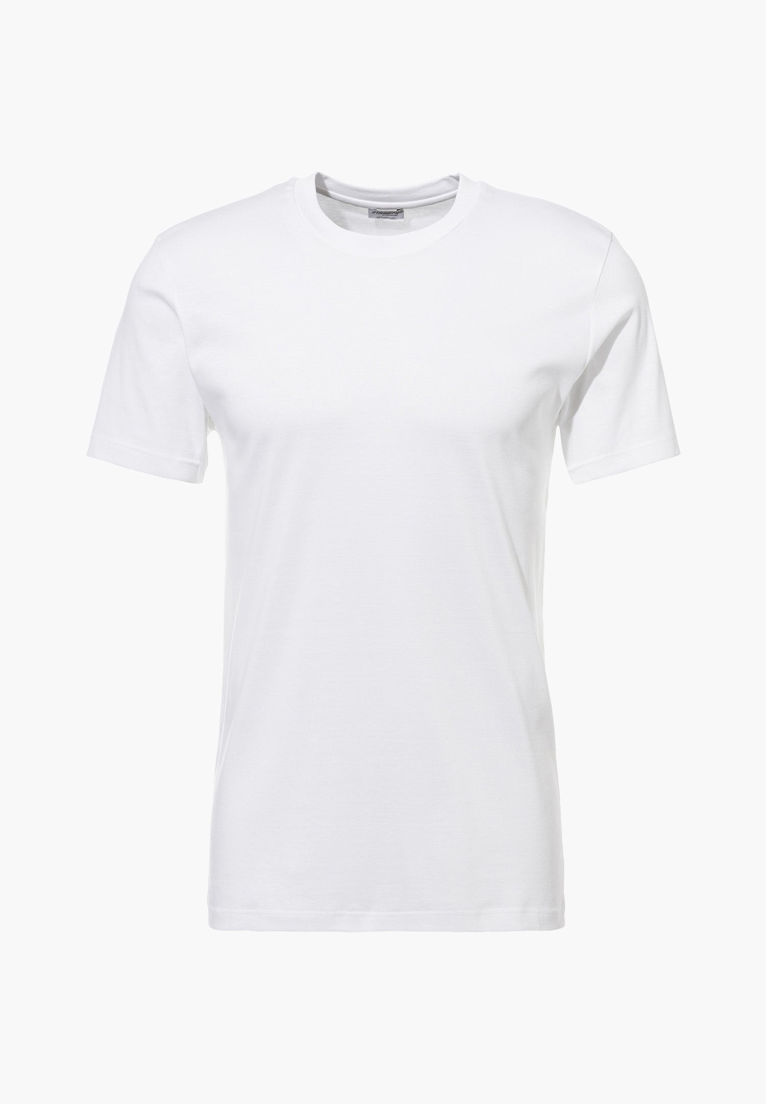 Our classic 100% cotton quality of fine rib with opaque surface. The strucure of the knit provides remarkable comfort and elasticity. Short sleeve T-Shirt features self fabric band around the crew neckline.
