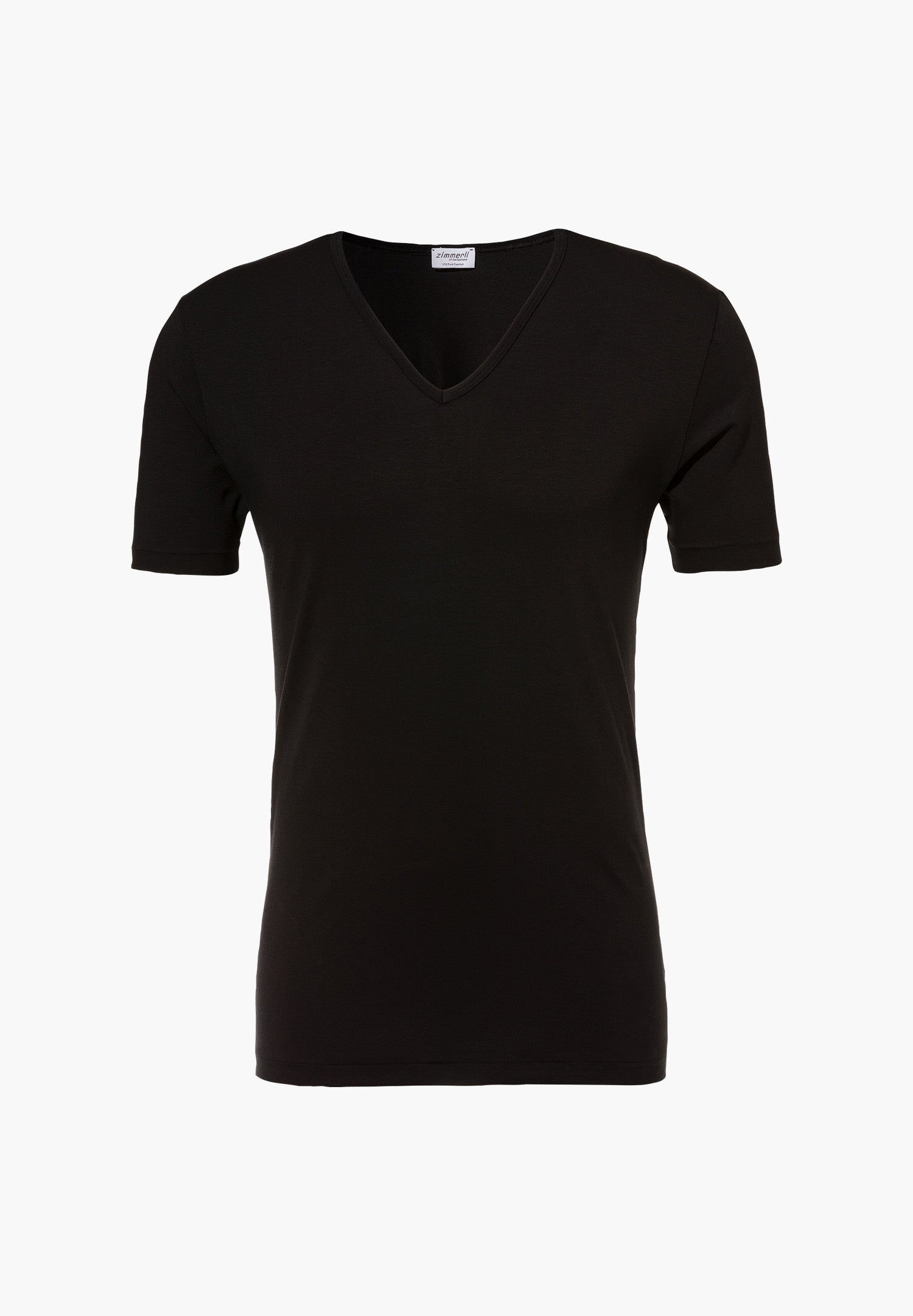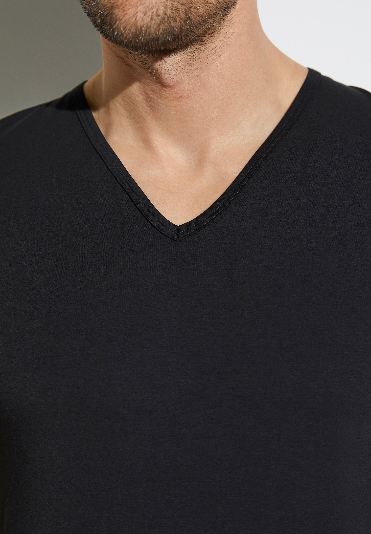 Thanks to its perfect fit and the ultrafine jersey fabric, this short-sleeved V-neck shirt offers pure comfort for everyday wear. The exquisite Pima cotton ensures an elegant sheen and is beautifully soft, while the small elastane component guarantees perfect flexibility so the fabric is gently figure-hugging. Perfectly finished seams and an elegant V-neck round off this versatile top, making it ideal for wearing under or over another garment. In addition to classic white and black, this short-sleeved shirt is available in a dark blue colour and can be paired perfectly with the matching briefs from the PURE COMFORT collection.