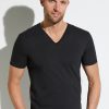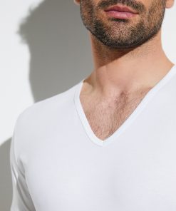 Thanks to its perfect fit and the ultrafine jersey fabric, this short-sleeved V-neck shirt offers pure comfort for everyday wear. The exquisite Pima cotton ensures an elegant sheen and is beautifully soft, while the small elastane component guarantees perfect flexibility so the fabric is gently figure-hugging. Perfectly finished seams and an elegant V-neck round off this versatile top, making it ideal for wearing under or over another garment. In addition to classic white and black, this short-sleeved shirt is available in a dark blue colour and can be paired perfectly with the matching briefs from the PURE COMFORT collection.