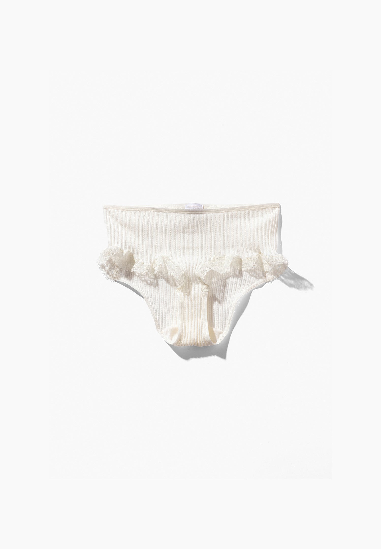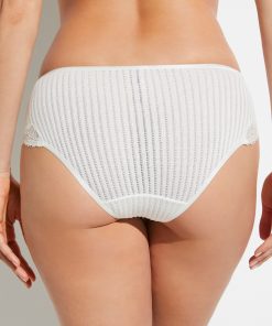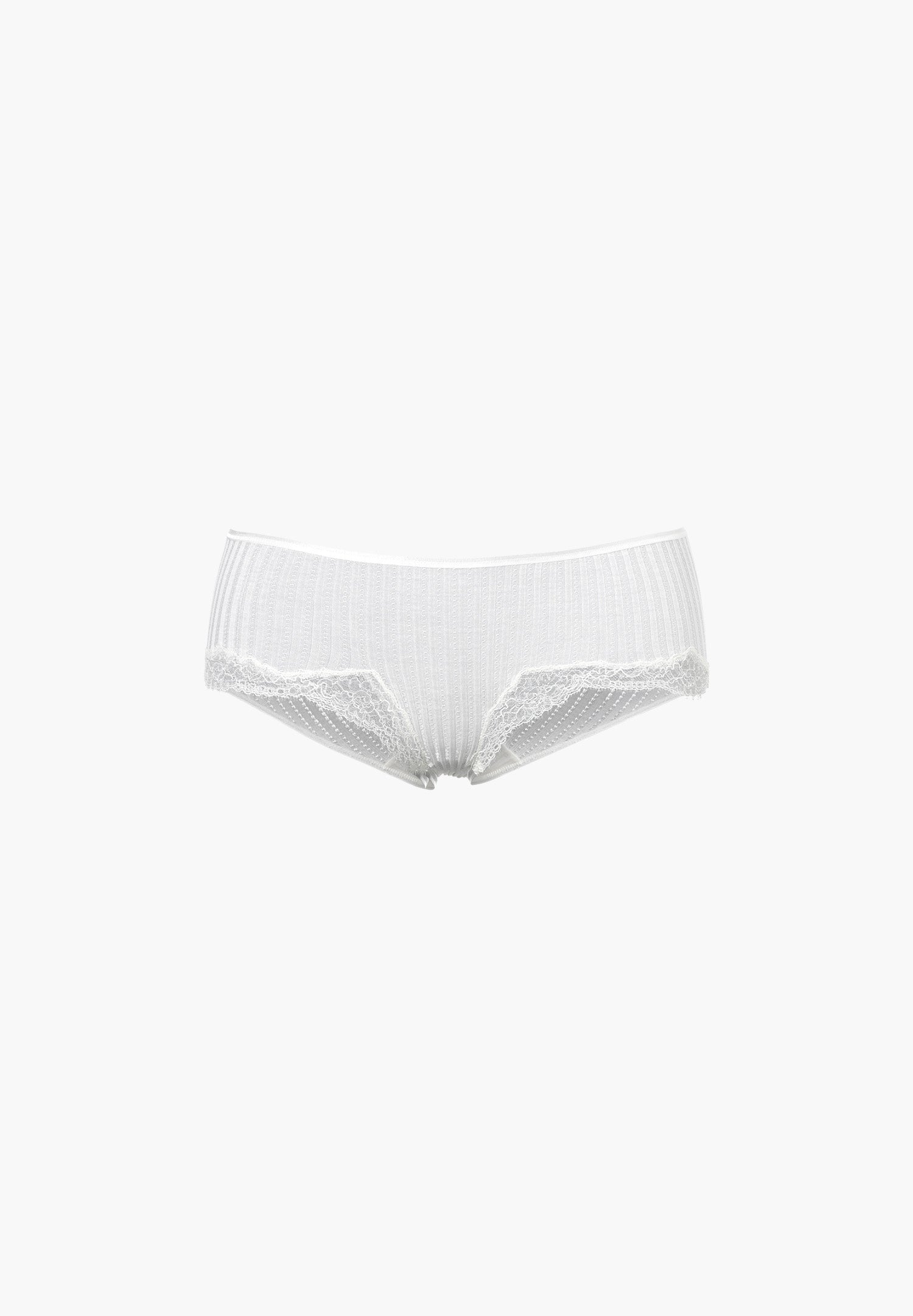 Small masterpieces are hidden in the airy ajouré ribs. Intricate patterns run through the pure cotton of these high-waisted hipsters, which are topped with delicate lace from Calais. So much luxury is only possible with passionate Swiss craftsmanship.