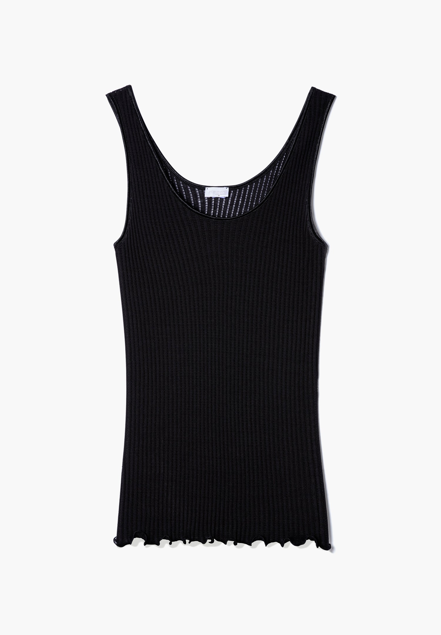 Modern private luxury – a Zimmerli Iconic new without lace. This elegant women’s top from the Maude Privé line is both underwear and ready-to-wear style and epitomises passionate Swiss craftsmanship, timeless feminine design and maximum comfort. The sensual Maude Privé line impresses with its sophisticated fine rib fabric, which is knitted as a tube without any side seams. These sensual masterpieces with passion delicately caress every body. Made from the finest Swiss cotton, the delicately translucent ajouré rib reveals artistic patterns and an incomparable lightness. The satin edging on the armholes and back sets sophisticated accents, while the ruffled hem emphasises the feminine elegance. The neckline and hem are cut out by hand and finished with the utmost care. The luxurious styles in this line are made in Switzerland with great craftsmanship – as exclusive underwear or ready-to-wear tops that can also be worn on the outside. Let your feminine side shine and enjoy the incomparable feeling of the finest Swiss craftsmanship.