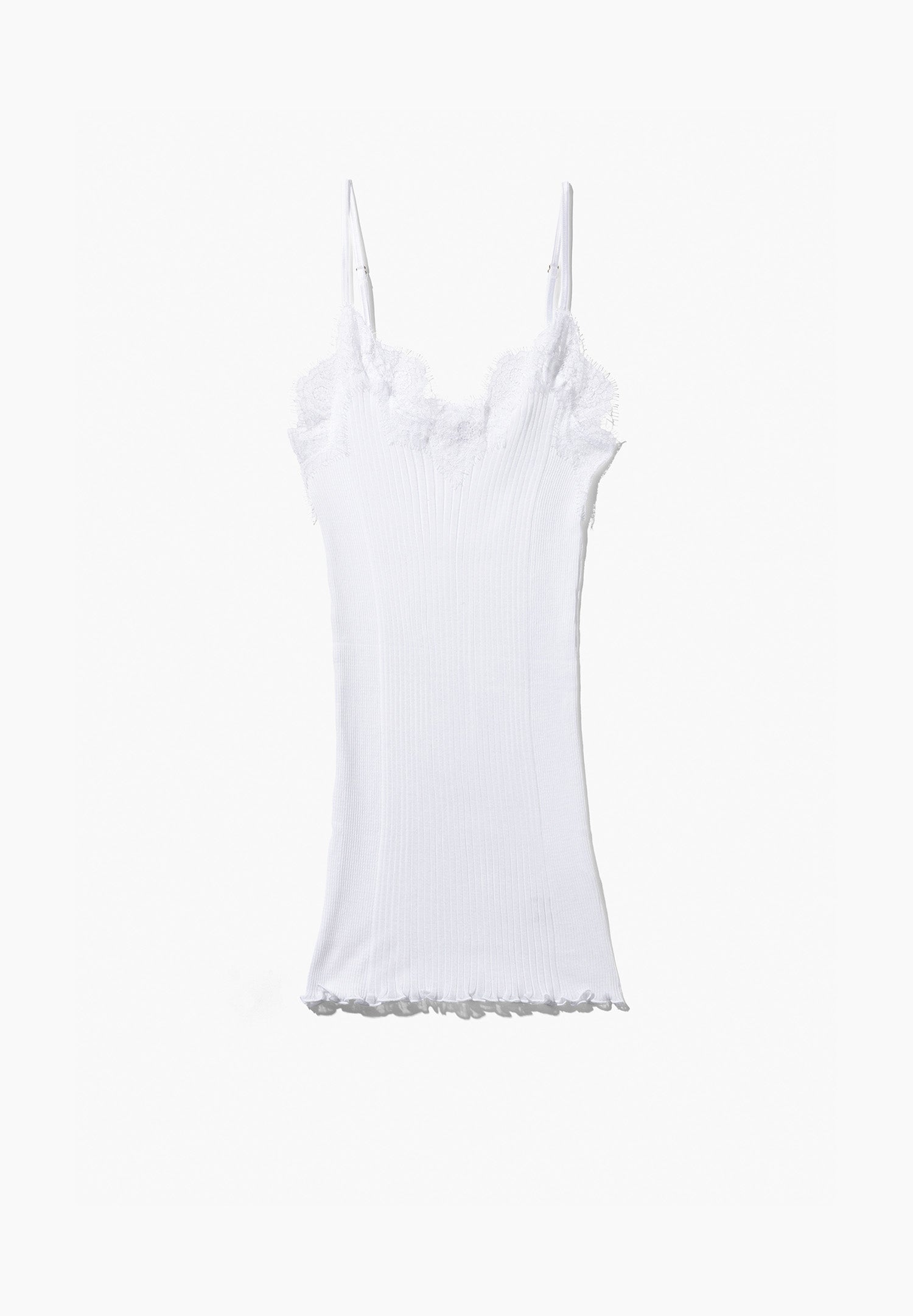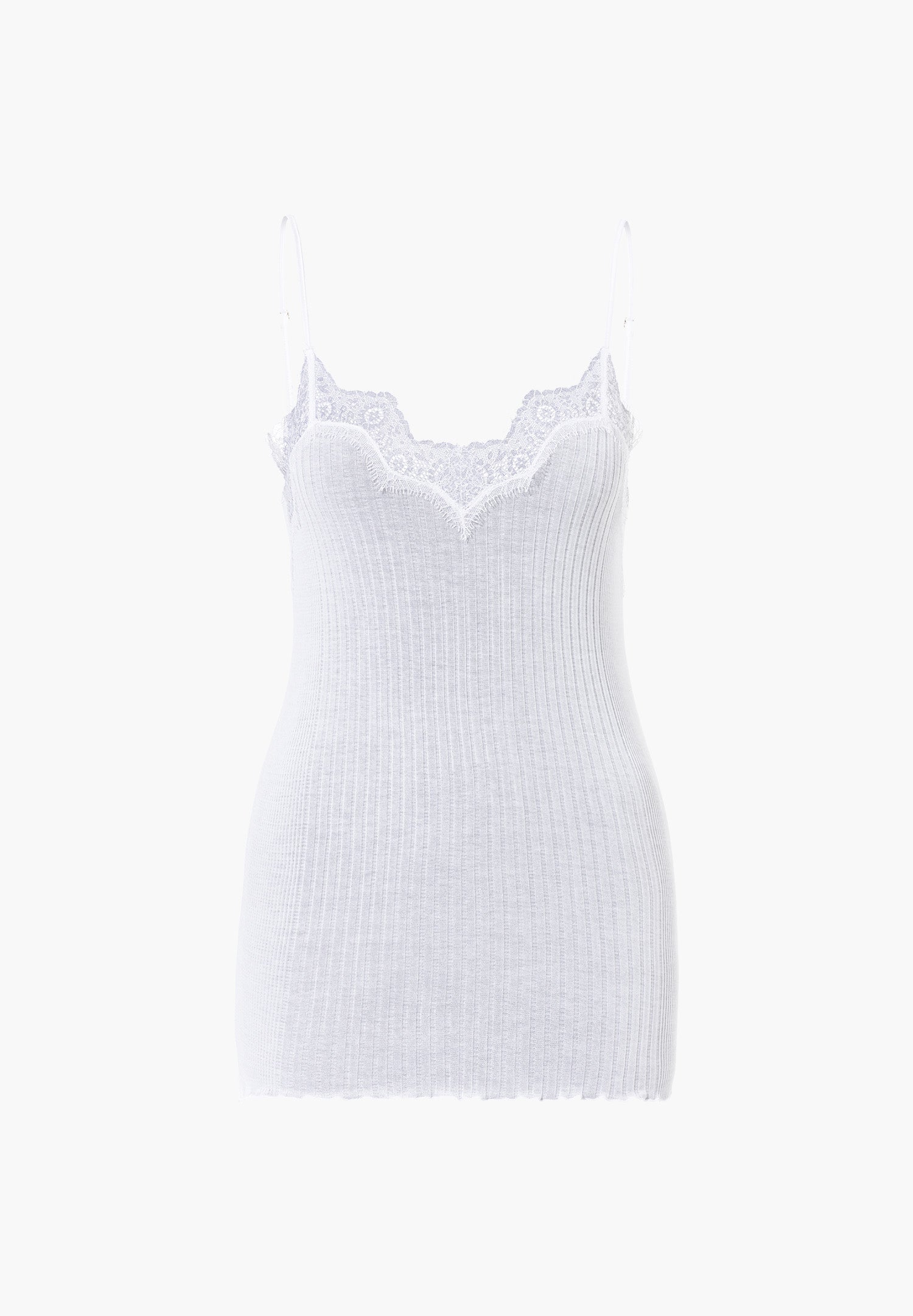 This spaghetti top from our Richelieu line is made of pure Pima cotton from Peru which is adorned with eyelash lace. The delicate, unique ribbing structure consists of wider ribbings on the front and narrower ribbings on the sides. Knitted in Ermatingen on Lake Constance and sewn in Mendrisio, Switzerland’s sunniest region, these iconic Zimmerli styles are enthralling quality lovers everywhere, even as far away as Hollywood.
