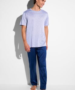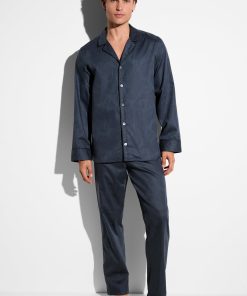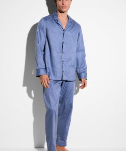 Zimmerli Men’s Nightwear Filodiscozia | Pyjama Long Short Sleeve – Geo Grey Blue | Geo Grey Blue