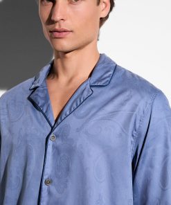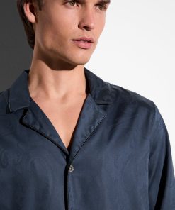 Zimmerli Men’s Nightwear Filodiscozia | Pyjama Long Short Sleeve – Geo Grey Blue | Geo Grey Blue